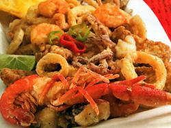 Luego agregue al refrito preparado el arroz lavado y bien escurrido, sofría por otros 2 minutos más.